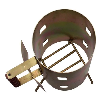 Fogonero tipo diablito de chapa. 21 cm de diametro, alto total 38,5 cm. Material chapa de acero 1mm.