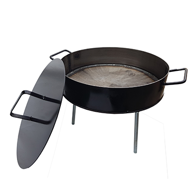 Disco de 60 cm de diámetro. Base de disco de arado y fleje de chapa de 2 mm de espesor x 8 cm de alto. Capacidad 23 ltrs.