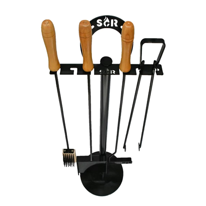 Herramientas para la parrilla x 4. Palaita; Cepillo; Pinza; Atizador + Soporte de pie al piso.